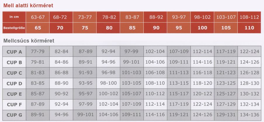- A fűző szám adatát a mell alatti körméret határozza meg.